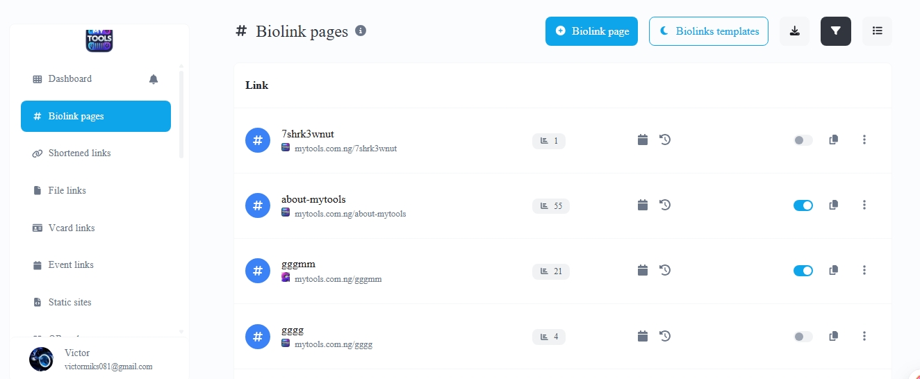 - Bio Link Pages (custom branding & customization)